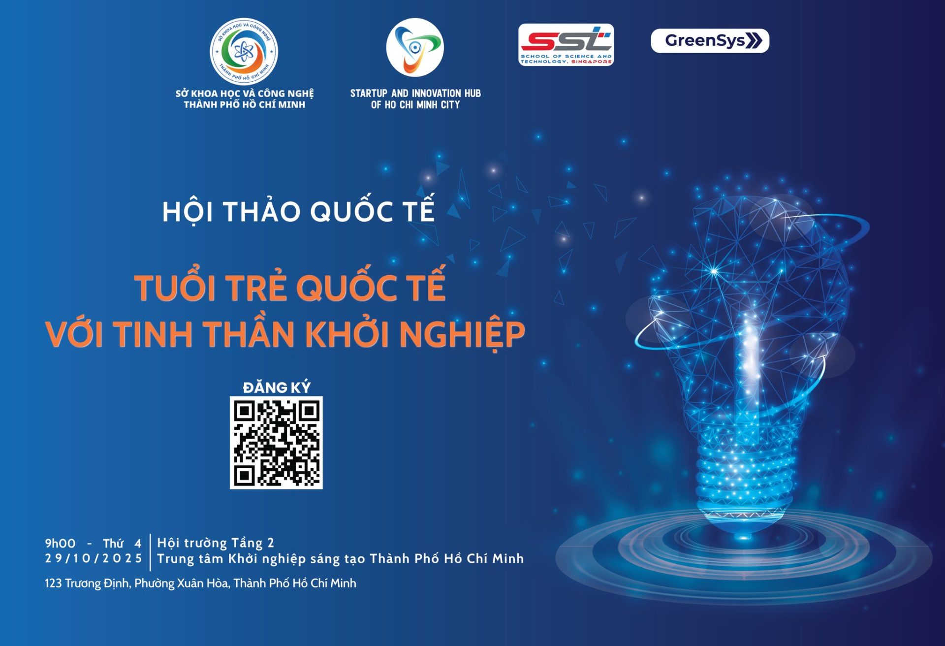 Địa điểm: Hội trường Tầng 2, Trung tâm Khởi nghiệp Sáng tạo TP.HCM (SIHUB), Số 123 Trương Định, Phường Xuân Hòa, TP.HCM