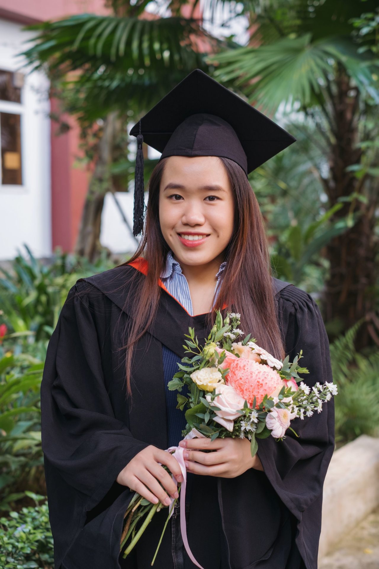 2. Tân Thạc sĩ, Tân Cử nhân, Tân Kỹ sư vui lòng chỉnh trang lễ phục trước khi xếp hàng lên sân khấu theo mẫu bên dưới, vui lòng kéo dây kéo của áo lễ phục (đối với tân thạc sĩ và tân cử nhân hệ trong nước) tháo các phụ kiện cá nhân không liên quan đến lễ phục trước khi lên sân khấu để đảm bảo tính nghiêm trang và đồng bộ của toàn bộ Tân Thạc sĩ, Tân Cử nhân, Tân Kỹ sư khi tham gia buổi Lễ.